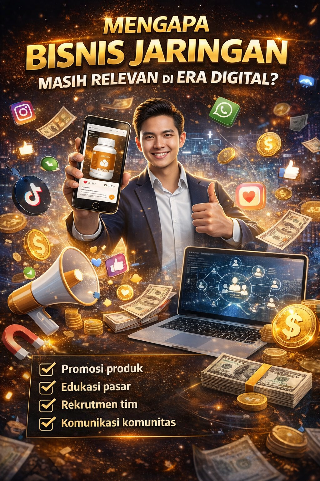 Di era media sosial dan digital marketing, model bisnis jaringan justru semakin mudah dijalankan. Platform seperti Instagram, TikTok, dan WhatsApp mempermudah: